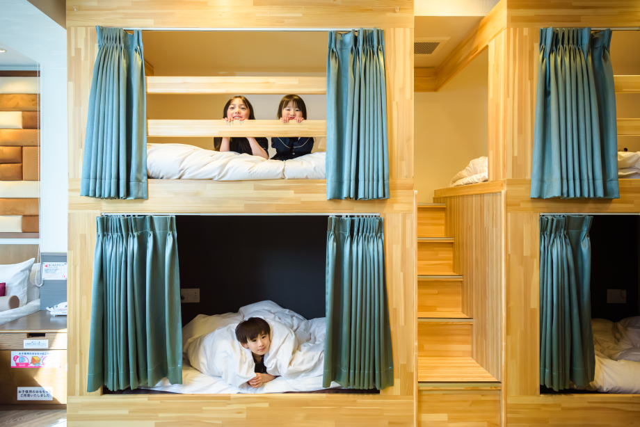 ダブルベッドと二段ベッドで最大定員6名様のお部屋です。